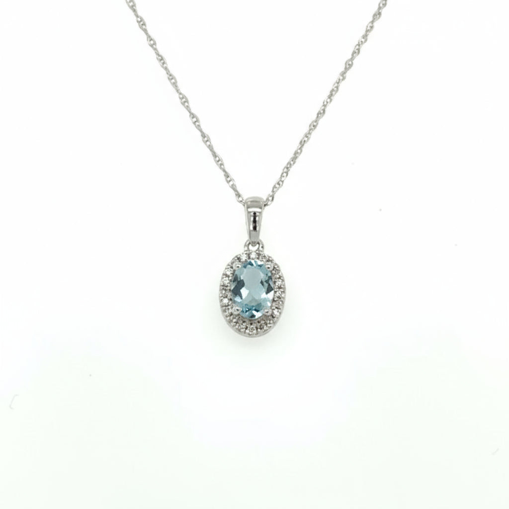 Our necklace collection hosts a large birthstone center stone with a halo of diamonds set in 10K white gold to create an eye-catching piece.