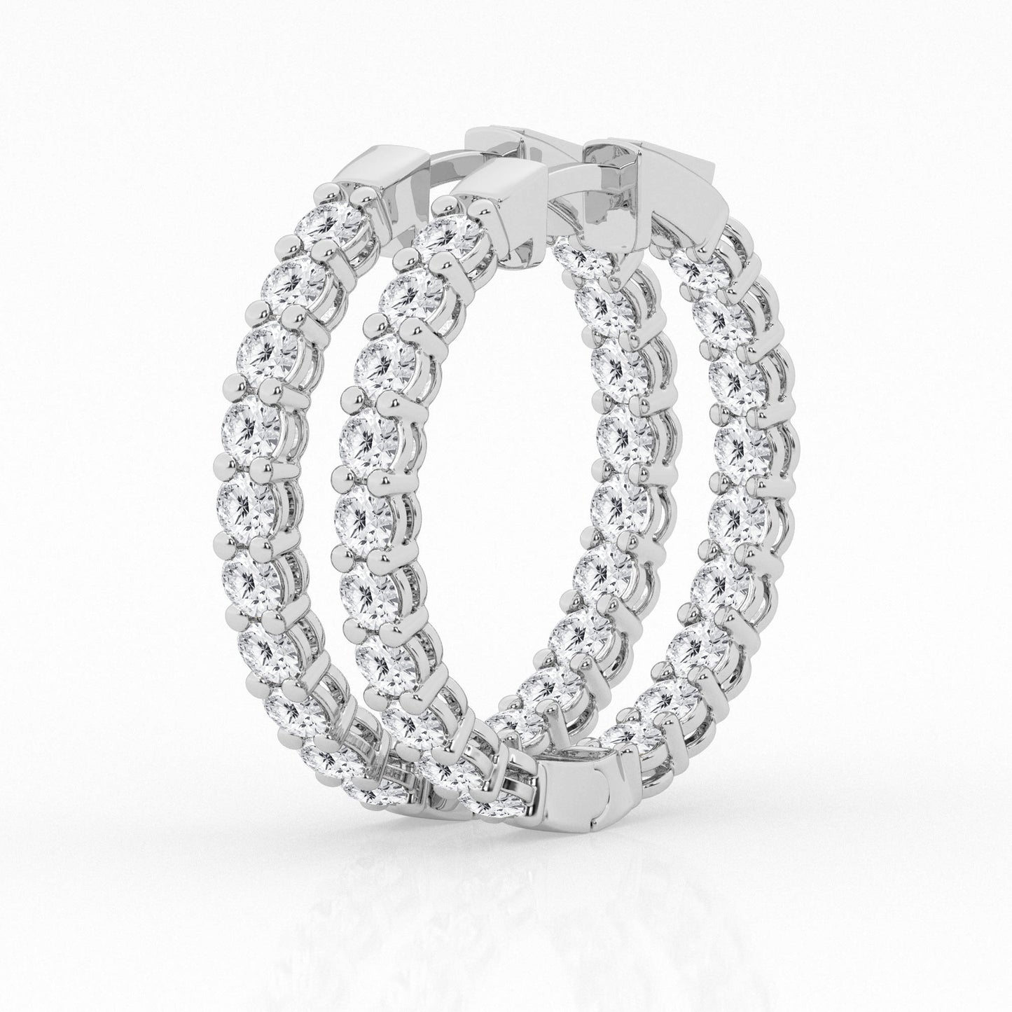 14K white gold, lab grown diamond, inside/outside hoop earrings, 3ctw