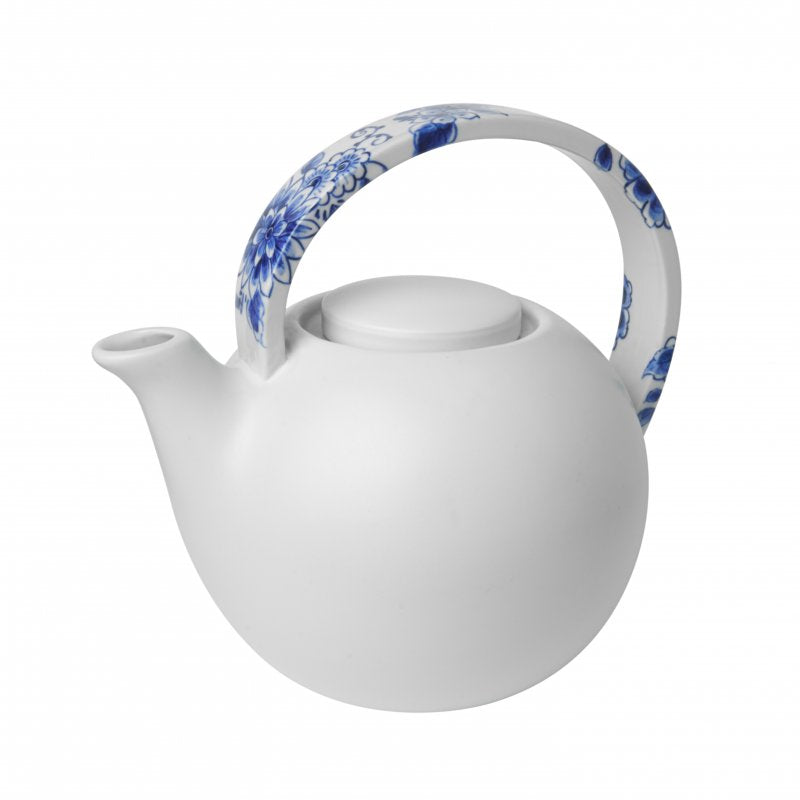 This modern Delft tea pot has a matte white finish accented by a more traditional glossy Delft handle.