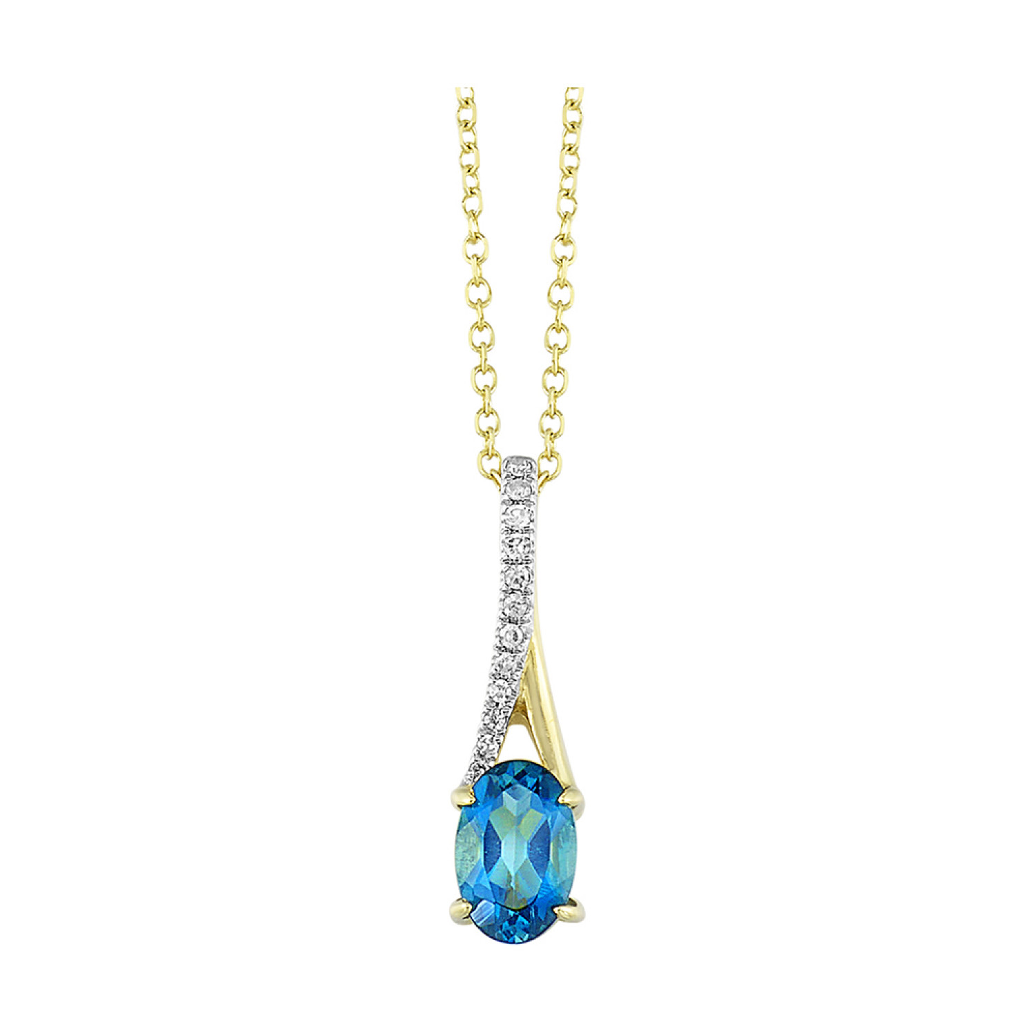 10KT yellow gold, blue topaz and diamond (1/25 CTW) pendant