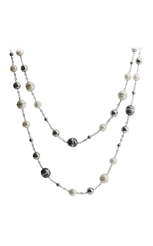 Sterling silver 48" necklace with freshwater pearls and hematite beads