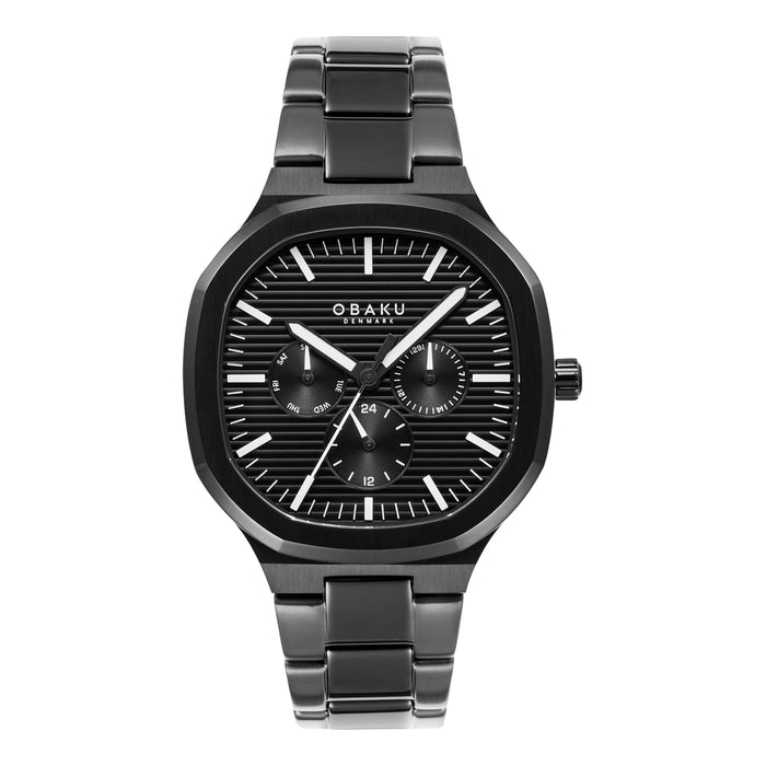 The Ild Dark Obaku Watch exudes modern sophistication with its sleek black 42mm case and matching black dial. Protected by extra hardened mineral crystal, this timepiece combines durability with style. Its black strap, sized 22x20mm, complements the bold design, while the precise chronograph movement offers advanced functionality. Water resistant up to 5 ATM, this watch by Obaku is perfect for those seeking a refined yet practical accessory.